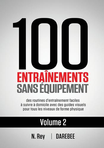 Des centaines de milliers de personnes à travers le monde utilisent les entraînements Darebee au poids du corps sans équipement pour faire de l'exercice à la maison. Le Volume 2 de 100 Entraînements Sans Equipement de Neila Rey (DAREBEE) est destiné à tous ceux qui veulent rester actifs, avoir une bonne forme physique, améliorer leur tonicité musculaire et se sentir mieux tout simplement. Trouvez l'entraînement que vous aimez, effectuez-le à votre niveau et fixez vos objectifs pour aller encore plus loin. Une grande variété de séances d'entraînement signifie que vous ne serez jamais à court de défis. Vous pouvez les faire dans n'importe quel ordre ou vous pouvez essayer de les conquérir tous dans un délai d'un an en réussissant à les faire chacun, confortablement, au niveau III. L'approche visuelle facile à suivre et le système à trois niveaux de difficulté vous permettront de: Ne plus vous inquiéter de trouver le temps pour les exercices (faites-les quand vous le souhaitez). Ne pas avoir de soucis pour les vêtements de sport (vous pouvez les faire en sous-vêtements). Ne pas prendre un abonnement à la salle de sport (économisez votre argent pour d'autres choses) Ne pas avoir de soucis d'équipement ou d'espace (il vous faut rien pour le premier et remarquablement peu pour le second). Votre corps est là où vous vivez. Le Volume 2 des 100 Entraînements Sans Equipement de Darebee vous permet de trouver votre propre moyen d'en faire la meilleure version possible, pour vous.