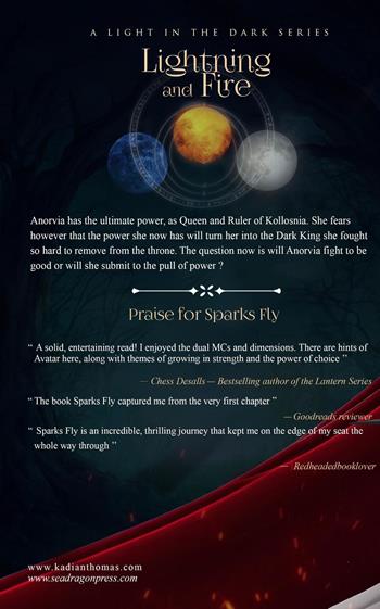 A Flash of Darkness- Book 3 in a Light in the Dark series. Following the second great war of Kollosnia, some time has gone by. But like in true Kollosnia fashion everything has gone horribly wrong. Now it's time to make it right. Anorvia and Calina have never seen eye to eye but they both agree that this fight, over the power of the throne and killing of their people, must end. Will they use their newly found power to unite the people of Kollosnia or will they leave it to go up in flames? This is a choice that these two influential women have to make. Will they come together? Or is it already too late?
