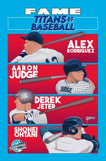 FAME: Titans of Baseball brings together four of the most electrifying and influential stars to ever define the game. This trade paperback features illustrated comic book biographies of Aaron Judge, Derek Jeter, Alex Rodriguez, and Shohei Ohtani, chronicling their rise from aspiring players to global baseball icons. From Jeter’s championship leadership and Rodriguez’s power-hitting dominance to Judge’s record-breaking feats and Ohtani’s revolutionary two-way brilliance, each story captures the passion, perseverance, and impact that reshaped modern baseball. Told in a dynamic and accessible format, this collection celebrates the legends who expanded the sport’s reach and inspired generations of fans around the world.