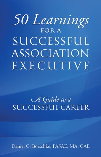 50 Learnings for a Successful Association Executive -A Guide to a Successful Career is more than just a book on management, it is a treatise on what has been and what can be a successful aide for the individual just on-boarding in association management or a veteran executive who is looking for some reassurance or insights. The Corner Office can be a very lonely location. Managers inherently ooze confidence, but deep down we all need a pat on the back or a kind word to reaffirm that we are on target and doing the very best that we can. 50 Learnings provides knowledge and recommendations on how to achieve such success and a second opinion on the maneuvers that we all use with staff and Boards of Directors. 50 Learnings for a Successful Association Executive: A Guide to a Successful Career is your go-to-guide for individuals who need a helping hand or a kick in the rear. This treatise will provide a reminder why individuals entered the management profession with a specific emphasis on associations and non-profits in the first place. 50 Learnings will provide the reader an understanding for what it takes to be successful and front a management team or partner with a Board of Directors. The learnings might seem rather obvious to some, but the detailed explanations and the stories will give all a moment of thought and understanding that will get you through your next anxiety-laden moment or career threatening crisis. Author, Daniel C. Borschke, FASAE, MA, CAE who previously wrote the acclaimed business book: If You Are Going Through Hell Don’t Stop Keep Going – Guide to Transition and Search takes the opportunity in this new heart-felt expose to once again share his experiences and knowledge in the association community. After more than 4 decades managing trade associations and serving as an Executive Recruiter, such insights are based on unique stories and life-long experiences. 50 Lessons should certainly be considered a continuation of what it takes to get the right job and what it takes to keep the right job. • Associations Exist to Serve Its Members • Get Certified – A Career and not just a Job • Lead – Don’t Follow • Maintain your Ethics – Ultimately You Only Have Your name and Reputation • Don’t Overstay Your Welcome Such learnings provide not just the flavor of the conversation within the book but also illustrates what is important for an executive to succeed in the association and not-for-profit profession, a unique and specialized niche of the overall business community. However, though the book emphasizes experiences within the association and not-for-profit community, the 50 Learnings are easily transferable and pertinent to all individuals who lead teams and front individuals whose goals always include doing their ultimate best while succeeding in their careers.