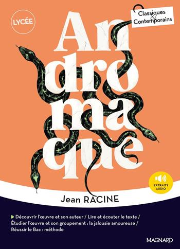 La pièce : La guerre de Troie est bien finie. Les combats d’Achille avec le Troyen Hector appartiennent au passé. Hermione, la fille du roi Ménélas, est désormais la fiancée de Pyrrhus, le fils d’Achille. Mais Pyrrhus délaisse sa promise – et pour qui ? Une Troyenne, une prisonnière, une vaincue : Andromaque, la veuve d’Hector, qui déteste Pyrrhus et ne songe qu’à protéger le fils qu’elle a eu de son défunt époux. Lorsque les Grecs envoient Oreste, amoureux d’Hermione, réclamer la mort de cet enfant, une mécanique tragique se déclenche. Entre tous ces personnages partagés entre devoir et désir, qui résistera à la violence de ses passions ? Qui laissera son amour se transformer en haine ? L'objet d’étude : le théâtre du XVIIe siècle au XXIe siècle L'accompagnement pédagogique : Une présentation complète pour découvrir l’auteur et comprendre le contexte historique, artistique et littéraire de l'œuvre Le texte intégral et des extraits audio Des axes d’étude avec des questions, des encadrés sur les grandes notions littéraires et une préparation progressive aux épreuves écrite et orale Des explications linéaires sur des passages clés Un groupement de textes problématisé : la jalousie amoureuse Une synthèse et des citations clés pour récapituler les enjeux de la pièce Méthode : des fiches et des exemples pour se préparer à l’examen En audio : une épreuve orale complète du Bac pour se mettre en situation Tout le vocabulaire de l'analyse de texte : théâtre, tonalités, figures de style En + : un cahier iconographique de 8 pages en couleur pour les prolongements culturels et artistiques