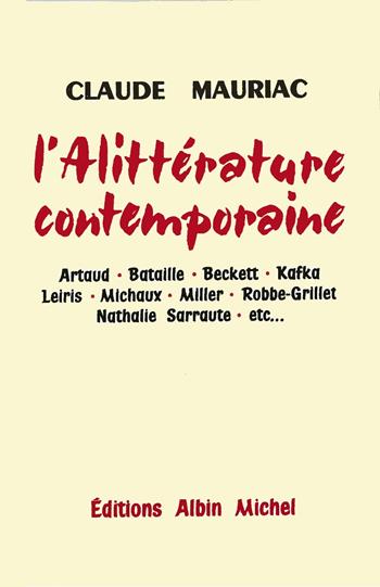 « L’allitérature est en train de succéder à la littérature. Les auteurs de la nouvelle école n'en écrivent pas moins. Ils ont leur théoriciens. Nathalie Sarraute (... ), Roland Barthes (... ). Parmi les représentants les plus significatifs de l'allitérature, il faut citer Samuel Beckett, auteur de romans qui, en leur point ultime de réussite, deviennent proprement illisibles. Et, dans un ton plus intellectuel et systématique, l'écrivain du Voyeur, Alain Robbe-Grillet autour duquel une meute de jeunes confrères assis en rond commence à montrer les dents. »