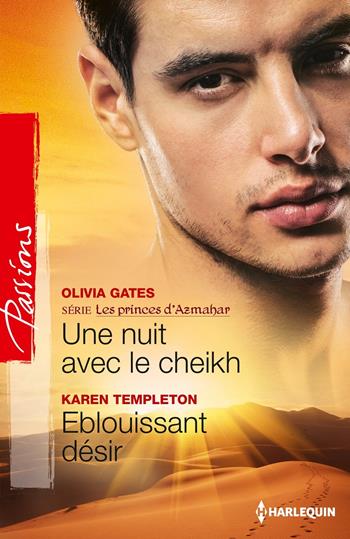 Série « Les princes d'Azmahar », tome 3 Ils veulent conquérir le trône, et le cœur de leurs belles… Une nuit avec le cheikh, Olivia Gates Layla, sous le choc, ne peut détacher ses yeux du mystérieux inconnu qui a mis en fuite les hommes qui ont tenté de l’agresser. Sombre, menaçant, un corps majestueux… Sa puissance à couper le souffle l’électrise. Et, soudain, des lointains souvenirs du royaume d’Azmahar refont surface. Où a- t-elle déjà vu ce regard envoûtant ? Pourquoi le visage de cet homme si incroyablement séduisant lui semble-t-il familier ? Une chose est certaine : elle éprouve un impérieux désir de suivre son énigmatique et ténébreux sauveur. Au mépris de toute raison. Eblouissant désir, Karen Templeton Ces baisers, ces caresses, cette fièvre… C’était une erreur, Blythe le savait. Mais, malgré tous ses efforts pour résister à l’attirance irrépressible qu’elle ressentait pour Wes Philips, elle a fini par céder, incapable de lutter contre l’évidence. Et depuis leur nuit de passion elle n'a cessé de penser à lui. Aussi doit-elle se reprendre, et vite. Car Wes, elle en est consciente, n’a qu’une seule priorité : son fils Jack. De plus, s’il est dans sa vie aujourd’hui, c’est uniquement parce qu’il l'a embauchée en tant que décoratrice. Et, entre eux, il y aura seulement une relation professionnelle. Rien d’autre…