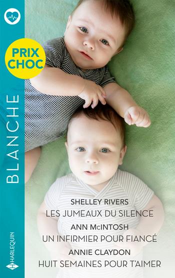 Les jumeaux du silence - Un infirmier pour fiancé - Huit semaines pour t'aimer Prix choc Blanche - 30 % Les jumeaux du silence,Shelley Rivers Il a suffi d'une nuit de passion pour que Thurza se retrouve enceinte... de jumeaux ! Longtemps, elle a espéré que le Dr Logan Fox assume ses responsabilités vis-à-vis de leurs garçons. Hélas, le beau médecin s'est évaporé aussi vite que l'attirance qui les a unis. Aujourd'hui pourtant, Thurza est résolue à rompre le silence entre eux, pour le bien de sa famille... Un infirmier pour fiancé,Ann McIntosh Jamais Geneviève n'aurait dû s'inventer une vie de couple épanouie pour rassurer sa mère. Parce que cette dernière lui rend visite aux Caraïbes, la voilà contrainte de se trouver un faux fiancé - et vite ! Par chance, Zach Lewin, le sublime infirmier qui l'assiste en salle d'opération, accepte de jouer le jeu. Mais la comédie prend un tour dangereux quand la passion s'en mêle... Huit semaines pour t'aimer,Annie Claydon Cori est ravie : elle est autorisée à mettre en oeuvre son projet d'art thérapeutique au sein du service pédiatrique. Elle a huit semaines devant elle pour mettre de la couleur dans la vie des petits patients... et cela, aux côtés du beau Dr Tom Riley. Seule ombre au tableau : si Tom se montre parfois tendre envers elle, il ne cesse en même temps de la tenir à distance... Romans réédités