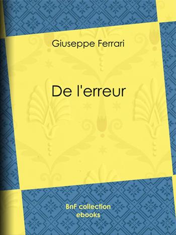 BnF collection ebooks - "L'école d'Élée, en révoquant en doute l'expérience, est la première qui ait tracé une vaste théorie de l'erreur. Le sens, pour Xénophane, n'offre que les objets en particulier, c'est la raison qui en saisit l'ensemble ; mais elle conduit à l'unité, à l'infini, et le monde, d'après elle, doit être un, immuable, éternel, sans bornes. Donc la nature, telle qu'elle se manifeste dans nos sensations, est incompréhensible ; les objets matériels sont hors de la vérité."