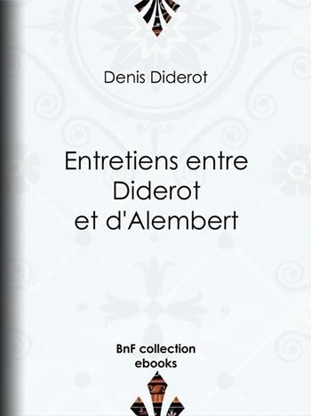 BnF collection ebooks - "D'ALEMBERT : J'avoue qu'un Etre qui existe quelque part et qui ne correspond à aucun point de l'espace ; un Etre qui est inétendu et qui occupe de l'étendue ; qui est tout entier sous chaque partie de cette étendue ; qui diffère essentiellement de la matière et qui lui est uni ; qui la suit et qui la meut sans se mouvoir ; qui agit sur elle et qui en subit toutes les vicissitudes ;" BnF collection ebooks a pour vocation de faire découvrir en version numérique des textes classiques essentiels dans leur édition la plus remarquable, des perles méconnues de la littérature ou des auteurs souvent injustement oubliés. Tous les genres y sont représentés : morceaux choisis de la littérature, y compris romans policiers, romans noirs mais aussi livres d’histoire, récits de voyage, portraits et mémoires ou sélections pour la jeunesse.