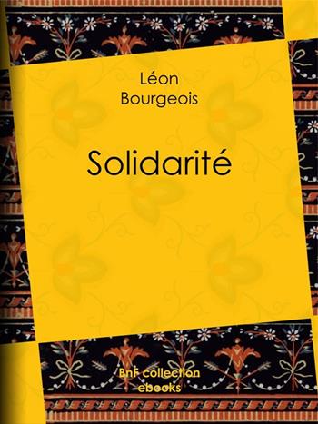 BnF collection ebooks - "Le mot de solidarité n'est entré que depuis peu d'années dans le vocabulaire politique. Au milieu du siècle, Bastiat et Proudhon ont bien aperçu et signalé les phénomènes de solidarité « qui se croisent » dans toutes les associations humaines." BnF collection ebooks a pour vocation de faire découvrir en version numérique des textes classiques essentiels dans leur édition la plus remarquable, des perles méconnues de la littérature ou des auteurs souvent injustement oubliés. Tous les genres y sont représentés : morceaux choisis de la littérature, y compris romans policiers, romans noirs mais aussi livres d’histoire, récits de voyage, portraits et mémoires ou sélections pour la jeunesse.