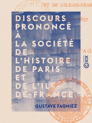 Discours prononcé à la Société de l'histoire de Paris et de l'Ile-de-France (eBook)