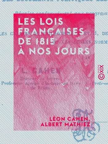 Bonaparte mit fin, par le Concordat, au régime de la séparation des Églises et de l’État, que le décret du 18 septembre 1794 avait établi en France. Après avoir assisté, le 18 juin 1800, à un Te Deum solennel dans la cathédrale de Milan, il s’ouvrit au cardinal Martiniana de son désir de s’entendre avec le Saint-Siège sur la situation de l’Église catholique française. Le pape chargea, le 28 juillet 1800, une Congrégation d’examiner les propositions du Premier Consul, et, le 17 septembre, l’évêque Spina partit pour Verceil, puis de là pour Paris, afin de suivre la négociation : il n’avait pas le pouvoir de conclure. Fruit d’une sélection réalisée au sein des fonds de la Bibliothèque nationale de France, Collection XIX a pour ambition de faire découvrir des textes classiques et moins classiques dans les meilleures éditions du XIXe siècle.
