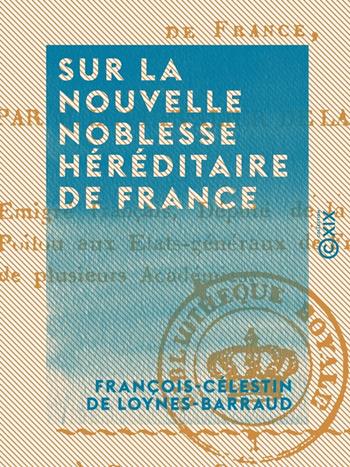 J’ai lu les réflexions sur la nouvelle Noblesse héréditaire en France, de M. le Baron d’Eggers ; et en vous renvoyant cet écrit j’y joins quelques observations. Oui certes, dans une monarchie, la noblesse héréditaire est un des plus puissans ressorts du gouvernement, ; et M. le Baron d’Eggers a raison de soutenir cette proposition. Il n’apartenoit qu’aux prétendus Philosophes et Savans du dix-huitième siècle de méconoître une telle vérité ; et il a fallu le concours de l’impéritie et de l’amour propre d’avocats, de procureurs, et d’autres hommes sans propriétés appellés par un Ministre ignorant ou perfide à être les législateurs de leur pays, pour y voir attaquer cette antique institution, base de la grandeur de la France. Fruit d’une sélection réalisée au sein des fonds de la Bibliothèque nationale de France, Collection XIX a pour ambition de faire découvrir des textes classiques et moins classiques dans les meilleures éditions du XIXe siècle.