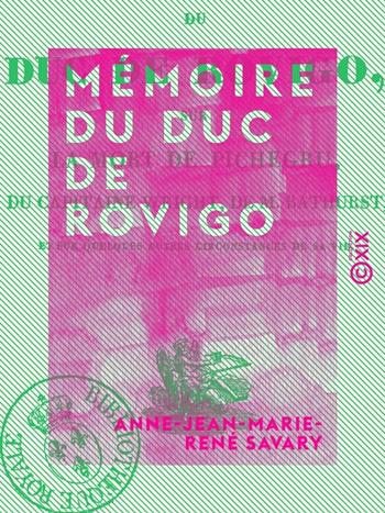 Mémoire du duc de Rovigo - Sur la mort de Pichegru, du capitaine Wright, de M. Bathurst, et sur quelques autres circonstances de sa vie (eBook)