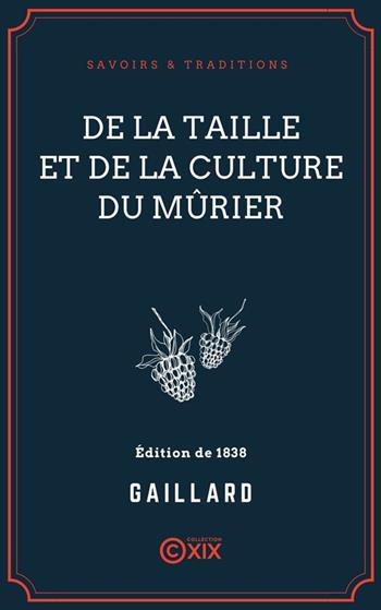 « Je désire offrir aux propriétaires découragés par des essais malheureux une garantie de succès et des ressources inappréciables, en leur signalant le mode de culture convenable, en leur indiquant, leur démontrant une taille bien conduite. Heureux si je puis faire perdre aux terrains les plus arides de nos contrées cette physionomie où l’œil cherche vainement quelques traces de verdure ! Je désire que nos chemins vicinaux, et une grande partie des terres incultes ou peu productives, se réveillent à la voix de la science, et se parent des trésors d’une végétation riche et belle. Tel est mon but, telle est la récompense que j’ambitionne. J’avais l’intention de retarder de quelques années la publication de cet ouvrage, cela eût été nécessaire pour m’étayer de quelques expériences dont je ne puis parler maintenant ; j’aurais pu employer aussi quelque temps, autant que cela aurait dépendu de moi, à visiter les différentes contrées où l’on cultive le mûrier, mais j’ai réfléchi que cette publication ne sera pas inopportune aujourd’hui. Les belles expériences tentées dans plusieurs départements du centre, et dont le succès met à l’abri de chances malheureuses la récolte des cocons, doivent nécessairement encourager les grandes plantations, et indiquer les moyens de les faire prospérer. Ces plantations me paraissent d’une nécessité incontestable et surtout d’un grand à-propos ; c’est pourquoi je me suis engagé à mettre au plus tôt de l’ordre et de la suite aux notes que j’ai recueillies depuis long-temps, et à les présenter au public. » Fruit d’une sélection réalisée au sein des fonds de la Bibliothèque nationale de France, Collection XIX a pour ambition de faire découvrir des textes classiques et moins classiques dans les meilleures éditions du XIXe siècle.