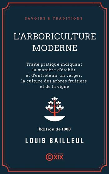 « Les arbres sont des êtres vivants, organisés : il est donc essentiel que ceux qui s’occupent d’arboriculture sachent comment ces arbres croissent, comment ils se nourrissent et fructifient ; sans ces connaissances, il serait difficile de faire de bonnes plantations, et, surtout, de comprendre les opérations si importantes de la taille. Deux sortes d’organes constituent les arbres : les organes élémentaires, et les organes que nous appellerons conservateurs. Les organes élémentaires sont le tissu cellulaire et le tissu vasculaire. Le tissu cellulaire est composé, comme l’indique le mot cellulaire, d’une multitude de cellules ou vésicules, à parois tantôt arrondies et unies entre elles, tantôt pressées les unes contre les autres. Ces cellules sont pourvues d’ouvertures qui communiquent entre elles. Ces vésicules, qui sont d’abord ovales, ne tardent pas à prendre une forme hexagonale ; leurs parois s’épaississent par l’introduction de matières minérales, et, avec le temps, elles acquièrent la dureté du bois. Le tissu vasculaire est formé par la réunion de vaisseaux ou de cellules dont les parois sont perforées. De distance en distance, les vaisseaux se joignent et présentent l’aspect d’un filet à mailles allongées. Le tissu cellulaire, qui apparaît le premier, forme la moelle, les parties molles des feuilles, la pulpe des fruits, l’extrémité des racines. Le tissu vasculaire, qui vient envelopper le tissu cellulaire et qui se solidifie en épaississant progressivement les parois des cellules, forme les parties solides. Les organes conservateurs sont les racines, la tige, les feuilles. La racine est cette partie de l’arbre qui, partant du collet, se cache dans la terre en se développant dans un sens opposé à la tige. La partie principale qui s’enfonce verticalement a pris le nom de pivot, et les radicelles ou ramifications qui partent du pivot se nomment chevelu. Ces ramifications se terminent par de petits renflements désignés sous le nom de spongioles. Ce sont ces spongioles qui possèdent, seules, la faculté d’absorber les substances nutritives que contient le sol. Nous ferons cette remarque que les arbres fruitiers provenant de semis ont seuls un pivot ; les autres, provenant de marcottes, présentent, au contraire, un talon. » Fruit d’une sélection réalisée au sein des fonds de la Bibliothèque nationale de France, Collection XIX a pour ambition de faire découvrir des textes classiques et moins classiques dans les meilleures éditions du XIXe siècle.
