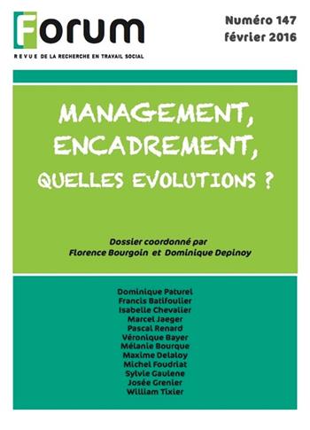 Présentation du numéro : Ce numéro de la revue Forum a pour thème l’évolution des pratiques managériales dans le champ de l’action sociale. Ce choix répond à une préoccupation récurrente qui revient comme un problème non résolu, interpellant à la fois les directeurs, les cadres intermédiaires mais aussi les professionnels de l’action sociale et médico-sociale. Ce problème se pose dans un contexte ressenti comme toujours plus contraignant avec d’une part une pression croissante des approches gestionnaires, l’interpellation sur les résultats des pratiques et leur évaluation, ainsi que la multiplicité des politiques publiques, source d’injonctions contradictoires. D’autre part, quelques déterminants se révèlent comme la nécessité pour les cadres de s’adapter constamment à la complexité des problèmes sociétaux et du vivre ensemble, la mobilisation de compétences diversifiées, l’encadrement d’offre de services concernant des personnes de plus en plus en situations de fragilités. Les articles retenus proviennent de travaux menés par des chercheurs et des cadres du champ de l’action sociale. Ils n’ont pas pour ambition d’explorer la thématique dans son ensemble mais, au contraire, ils se limitent à la compréhension de réalités partielles éclairantes pour comprendre les évolutions. Ces évolutions seront d’abord examinées sur un plan macro, celui des politiques (J.Grenier-M.Bourque) et des institutions (F.Batifoulier) avant d’explorer les effets sur l’apprentissage de la posture des cadres de direction (M.Foudriat) et intermédiaires (M.Foudriat-M.Delaloy).