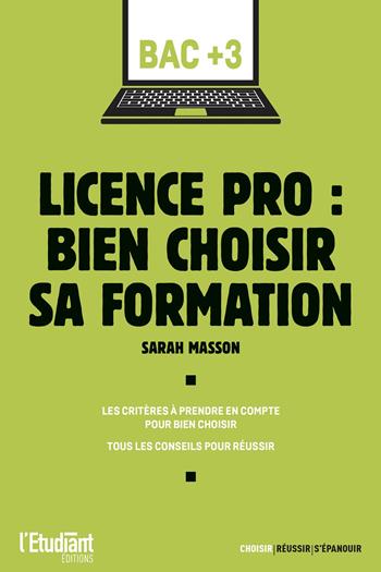 Quelle licence pro est faite pour vous ? - Les spécialités examinées une à une - Les conseils pour bien choisir votre licence pro - Les formules (alternance...) à la loupe Découvrez la licence pro qui vous correspond ! Poursuite d'études en 1 an après un BTS ou DUT, la licence professionnelle est très appréciée des recruteurs. Ce guide rassemble tous les conseils pour choisir la bonne licence professionnelle et passer le cap de la sélection. Inclus : la liste des spécialités, les témoignages d'étudiants et professionnels, des conseils pratiques, les détails des modalités d'accès, les débouchés...