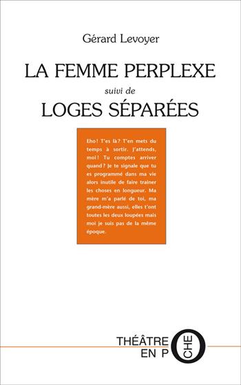 LA FEMME PERPLEXE (ou Moi et mon placard) C’est le récit à une voix, comme une voix intérieure, celle d’une femme qui fait un court bilan de sa vie, s’interroge sur son aptitude au bonheur, son incapacité à rassurer son chien dépressif, son amant complexé par la dimension de son sexe, incapacité à dompter son téléphone portable, à recevoir des fleurs sans pleurer... C’est drôle et dérisoire, touchant, humain, sensible... ALLONS DANS MA LOGE ! Edwige et Georges sont deux vieux comédiens, deux vieilles gloires qui ont partagé un bout de vie ensemble et partagent de temps à autre une affiche, plus rarement une loge. Entre eux tout est prétexte à chamailleries. Mais voilà qu’un inspecteur de police va les rapprocher en se comportant de façon étrange sous couvert d’obtenir des invitations. En coulisse, l’habilleuse et l’accessoiriste paniquent car leur passé n’est pas blanc-blanc. Gérard Levoyer est auteur de nombreuses pièces de théâtre, dramatiques radio, de nouvelles et de scénarii pour la télévision. Il est également comédien, metteur en scène. Prix SACD de la Radio en 2003. Prix Mounet-Sully, 1995