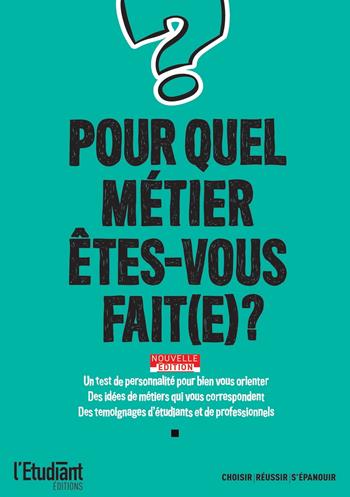 Comment ne pas se sentir un peu perdu lorsqu’on entend parler de "projet professionnel" ou de "projet d’orientation" ? Ce guide est conçu pour vous aider à vous connaître et à analyser vos capacités. Le test "profil métier" en 18 questions est fait pour cerner votre personnalité et vous donne des pistes de métiers qui correspondent à votre profil. Ce guide présente plus de 200 métiers, répartis en 15 grands domaines et accompagnés de conseils et de témoignages. Cette nouvelle édition fait le point sur tous les métiers émergents et auxquels on ne pense pas forcément.