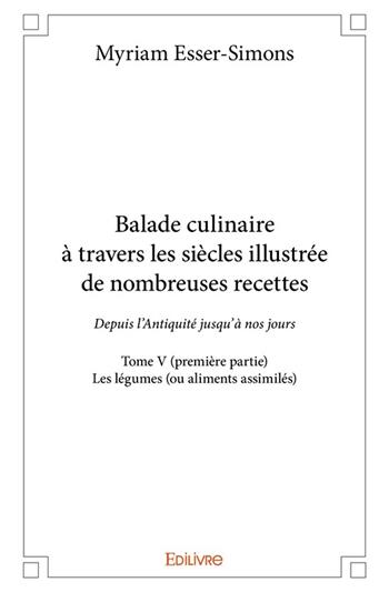 Le tome V (première partie) de notre ouvrage Balade culinaire à travers les siècles (allant de l’Antiquité jusqu’à nos jours) est consacré aux légumes (ou aliments assimilés), classés par ordre alphabétique. En effet, ceux-ci constituent aujourd’hui une partie importante de l’alimentation : le lecteur trouvera donc, dans ce livre, de nombreuses recettes, relevant aussi bien de la cuisine classique que de l’inventivité des chefs étoilés actuels. Le livre comprend également des introductions historiques aux différents légumes étudiés. Cette première partie du tome V se termine par des références bibliographiques et des sources informatiques. La suite des légumes fera l’objet de la deuxième partie du tome V.