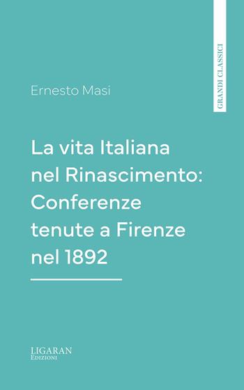 Scopri il cuore pulsante del Rinascimento italiano attraverso le parole di un maestro del pensiero! La vita Italiana nel Rinascimento: Conferenze tenute a Firenze nel 1892 di Ernesto Masi è un viaggio affascinante nel tempo, che ti trasporterà nel periodo più vibrante e rivoluzionario della storia italiana. Attraverso una narrazione avvincente e dettagliata, Masi svela i segreti di un'epoca in cui l'arte, la cultura e la scienza fiorivano come mai prima d'ora. Temi unici come l'evoluzione del pensiero umanistico, l'influenza delle corti italiane e il ruolo cruciale delle città-stato sono esplorati con una profondità e un'originalità che solo un esperto come Masi può offrire. La sua capacità di intrecciare storie personali con eventi storici rende questo libro non solo un'opera di saggistica, ma un vero e proprio racconto epico. Il punto di forza di quest'opera risiede nello stile elegante e coinvolgente di Masi, che ha ricevuto riconoscimenti per la sua capacità di rendere accessibili e appassionanti anche i temi più complessi. Le conferenze, tenute nella culla del Rinascimento, Firenze, sono state apprezzate per la loro chiarezza e profondità, guadagnando un posto d'onore tra gli studi storici. Destinato a un pubblico di appassionati di storia, studenti, accademici e chiunque desideri comprendere meglio le radici della cultura occidentale, questo libro è un must per chi vuole arricchire la propria conoscenza del Rinascimento. Non perdere l'opportunità di immergerti in un'epoca di straordinaria bellezza e innovazione. Acquista ora La vita Italiana nel Rinascimento e lasciati ispirare dalla grandezza del passato!