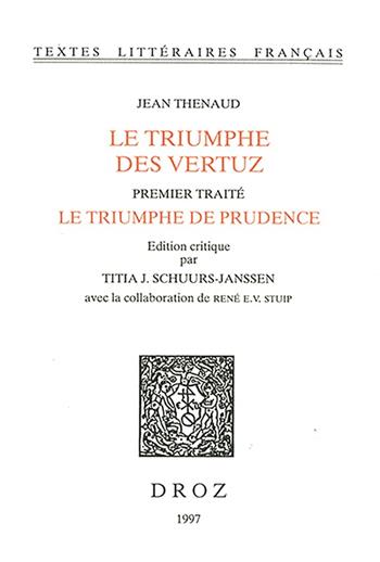 Après avoir offert en 1517 au jeune François Ier le premier volume de son «Triumphe des Vertuz», constitué des deux traités du «Triumphe de Prudence» et du «Triumphe de Force», Jean Thenaud s’attèle à la rédaction de la seconde partie. Le 28 février 1518, la naissance du premier Dauphin François lui impose d’adapter son projet initial à l’actualité. Au printemps 1519, il présente au roi les troisième et quatrième traités du «Triumphe des Vertuz». Ainsi, davantage que les deux traités qui le précèdent, le Triumphe de Justice, constitue-t-il un miroir des princes, dans lequel l’instruction morale apparemment destinée à l’enfant exhorte en fait le roi lui-même et l’enjoint à s’acquitter avec excellence de sa haute tâche. Ici comme ailleurs, Jean Thenaud recourt à son contemporain Erasme, dont l’«Institutio Principis Christiani», sortie de presse en mai 1516, rejoint ses préoccupations. Ayant procuré l’édition du «Triumphe de Prudence» (TLF, 489) ainsi que celle du «Triumphe de Force» (TLF, 550), Titia J. Schuurs-Janssen et René E. V. Stuip donnent maintenant l’édition critique du troisième traité que viendra clore celle du «Triumphe de Temperance».