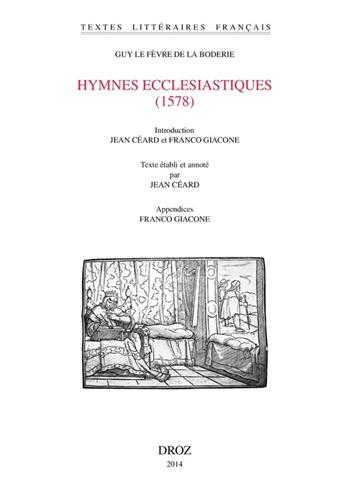 Longtemps ignoré ou plutôt négligé, l’orientaliste Guy Le Fèvre de La Boderie est aussi l’auteur d’une ample œuvre poétique dont les trois livres principaux paraissent la même année, en 1578. Deux d’entre eux sont depuis quelque temps accessibles au lecteur moderne. Voici le troisième. Constatant le succès du Psautier protestant, Guy veut s’« opposer au chant pipeur des Sirènes » en proposant un hymnaire en français, c’est-à-dire en traduisant un ensemble imposant d’hymnes chrétiennes dont beaucoup appartiennent déjà au Bréviaire, mais dont d’autres lui semblent pouvoir contribuer à nourrir la ferveur des fidèles. S’il participe ainsi au puissant renouveau de l’hymnologie chrétienne à la Renaissance, il veut, pour sa part, mettre à son service les multiples ressources de la poésie française et il ne craint pas d’expérimenter des formes et des mètres nouveaux. De plus, convaincu du pouvoir de « la douceur du vers et chant », il formule l’espoir que quelques bons musiciens s’emploieront à donner l’âme à cette poésie comme lui-même lui a donné le corps. ,
