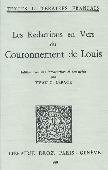 Du Couronnement Louis, l'une des plus anciennes chansons de geste françaises, il existe trois rédactions en vers. La troisième ne comporte que 315 vers; par ailleurs, les divergences que l'on peut noter entre les deux autres versions n'empêchent en rien l'éditeur d'opter pour une disposition synoptique. Premier volet d'un tryptique, le Couronnement Louis consitiue, avec le Charroi de Nîmes et la prise d'Orange, le premier noyau du cycle de Guillaume d'Orange.