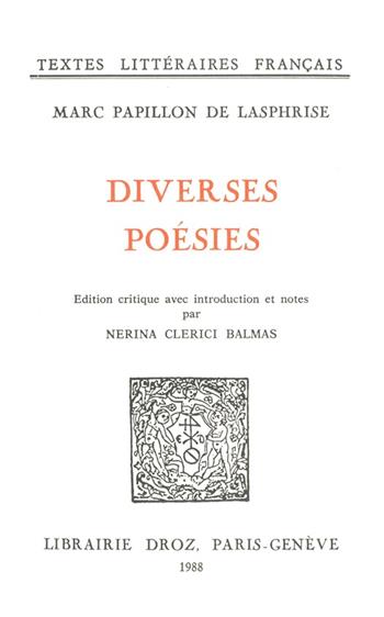 On redécouvre aujourd'hui, les poésies du capitaine Papillon de Lasphrise. En 1979, nous avons publié de lui les Amours de Théophile et l'Amour passionnée de Noémie (éd. M. Callaghan, TLF n° 264), et voici maintenant son troisième grand recueil, Les Diverses Poésies, qui sont un peu comme un "journal intérieur" où l'auteur enregistre, selon les occurrences et les humeurs du moment, les faits qui marquent ses jours : ses antipathies, ses deuils et ses joies, ses amertumes de courtisan délaissé... On goûtera de ces vers la joie de vivre, la gaillardise, proche parfois de Rabelais, mais aussi leur côté visionnaire, les glissements incessants entre réalité et fantastique, entre la raison et le rêve.