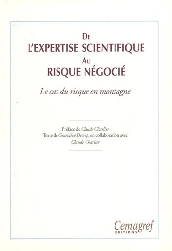L'expertise du risque est devenue l'un des champs d'activité d'organismes de statuts variés. La légitimité du spécialiste étant aujourd'hui liée à son appartenance à la communauté scientifique, le droit à l'erreur et à l'incertitude lui est contesté de façon permanente. La fonction d'expert est devenue prospective, voire prédictive et s'exerce désormais au sein d'un système d'acteurs traversé de clivages tel celui qui sépare les méthodes scientifiques des approches "profanes". Illustrée par le cas du risque en montagne, cette analyse est consacrée à l'expertise en tant qu'activité sociale et scientifique. Particulièrement destiné aux experts, aux aménageurs et à tous ceux qui interviennent dans le champ de la prévention.