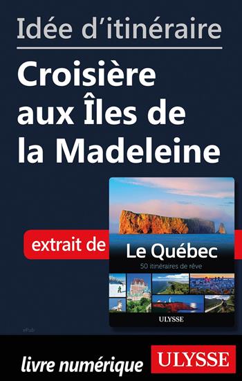 Idée d'itinéraire - Croisière aux Îles de la Madeleine est un court extrait, source d'inspiration pour un itinéraire de 8 jours en croisière sur le Saint-Laurent incluant un séjour de 3 jours aux Îles Idée d'itinéraire - Croisière aux Îles de la Madeleine est un court extrait en format numérique tiré du beau livre Ulysse " Le Québec – 50 itinéraires de rêve ". Il suggère brièvement un itinéraire de 8 jours en croisière sur le Saint-Laurent incluant un séjour de 3 jours aux Îles de la Madeleine : boucle au départ de Montréal, en passant par Québec, la Gaspésie, Cap-aux-Meules, l'île du Havre Aubert, l'île du Havre aux Maisons, avec, au retour, escale à Chandler et Québec.