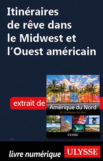 Itinéraires de rêve dans le Midwest et l'Ouest américain, extrait d'"Amérique du Nord – 50 itinéraires de rêve". Inspiration pour le voyage: Chicago, Rockies, Grand Canyon, Californie, Hawaii, Alaska. Itinéraires de rêve dans le Midwest et l'Ouest américain est un chapitre en format numérique extrait du livre Amérique du Nord – 50 itinéraires de rêve. Splendide source d'inspiration pour imaginer et planifier votre prochain voyage dans ce coin du monde, il propose une série d'itinéraires agrémentés de spectaculaires photographies en couleurs. Au programme, expédition sur les traces de Mark Twain au Missouri; escapades dans la trépidante Chicago et la décadente Las Vegas; excursions dans les Rocheuses américaines et dans les spectaculaires parcs nationaux du Wyoming, du Dakota du Sud, jusqu'au mont Rushmore, de l'Utha, du Montana, de l'Arizona, incluant le Grand Canyon, et du Nouveau-Mexique; découverte des vignobles californiens et des villes de San Francisco, Los Angeles et San Diego; exploration des États du Pacific Northwest; voyages jusqu'en Alaska et dans l'archipel d'Hawaii. Itinéraires de rêve dans le Midwest et l'Ouest américain décrit au jour le jour chaque itinéraire, les villes et villages à explorer et les paysages à admirer. Il dévoile ainsi toute la richesse des Grandes Plaines, de l'Ouest américain, de l'Alaska et même d'Hawaii. Chaque parcours présente aussi des capsules mettant en lumière les expériences inoubliables à vivre et les découvertes étonnantes à faire.