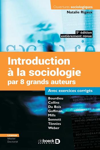 Nouvelle édition entièrement mise à jour. Huit grands auteurs : P. Bourdieu et E. Goffman interrogent l’identité individuelle, F. Tönnies, M. Weber et W. E. B. Du Bois réfléchissent la modernité, C. W. Mills, P. H. Collins et R. Sennett questionnent les sociétés contemporaines. Une nouvelle et deux nouveaux sociologues pour aborder la question de la race comme système de domination et de ses rapports à la classe et au genre, avec des perspectives critiques actualisées sur les auteurs étudiés. Un usage actif de la sociologie grâce à des illustrations, des photographies, des exercices et des corrigés. Des exercices supplémentaires accessibles gratuitement en ligne sur le site www.sociolog.be Destiné aux étudiants de premier cycle en sociologie.