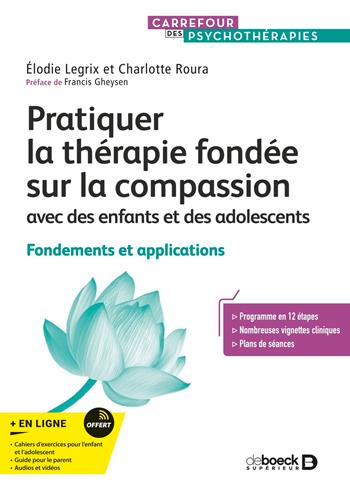 La Thérapie Fondée sur la Compassion (TFC) est une approche psychothérapeutique intégrative transnographique. Elle est multimodale et s’appuie sur les TCC en offrant une place prépondérante à la pleine conscience et à la compassion. La TFC est particulièrement efficace dans le traitement de l’anxiété et de la dépression chez l’adulte, mais également chez l’enfant. Dans un monde toujours plus exigeant et compétitif, la pratique de la pleine conscience et de la compassion diminue le niveau d’exigences et d’autocritique et aide les enfants et adolescents à poser un regard plus doux sur eux-mêmes. Ce manuel accompagnera les professionnels au coeur de cette nouvelle approche. Ils y trouveront : toutes les bases théoriques ; des séances détaillées et illustrées de cas cliniques ; tout ce qu’il faut pour mettre en pratique et expérimenter la TFC avec des enfants ou adolescents et leurs parents, grâce à de nouvelles stratégies visant le bien-être (calme, gestion des émotions...). En apprenant à cultiver la compassion, l’enfant et son parent se sentiront mieux et plus aptes pour affronter les tempêtes de la vie. Les + en ligne : Cahiers d’exercices pour l’enfant et l’adolescent Guide pour le parent Audios et vidéos