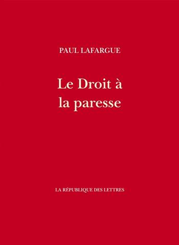La vie de Paul Lafargue se confond avec la naissance du Socialisme en France et les luttes de la SFIO (Section Française de l’Internationale Ouvrière) dont il est, au même titre que Jules Guesde ou Jean Jaurès, l’une des grandes figures. Après avoir épousé la deuxième fille de Karl Marx, Laura, il achève ses études de médecine et se lance à corps perdu dans le combat politique: organisation de l’Internationale Ouvrière en France et en Espagne, lutte contre les partisans de Mikhaïl Bakounine, tentative pour soutenir en province la Commune de Paris (1871). Il écrit de nombreux articles, publie des brochures de circonstance et traduit les ouvrages de Karl Marx et de Friedrich Engels. C’est en 1880, dans le journal "L’Égalité", qu’il publie en plusieurs livraisons son célèbre "Droit à la paresse". Ce pamphlet anti-capitaliste est une réponse à un ouvrage de Louis Blanc sur le "Droit au travail" de 1848. Pour Paul Lafargue, le droit au travail n’est en réalité qu’un droit à la misère. Violente désacralisation du travail et de la consommation, éloquent éloge du loisir et de l’oisiveté, ce manifeste de haute philosophie sociale détonne par son ton libertaire dans la sévère et rigide littérature socialiste de l’époque.