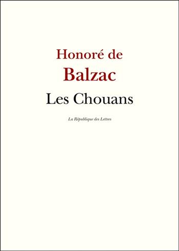 "Les Chouans, ou La Bretagne en 1799" fait partie des "Scènes de la vie militaire" dans les "Études de mœurs" de "La Comédie humaine". C'est par "Les Chouans", premier chef-d'oeuvre de Balzac, que débute le cycle de "La Comédie humaine". L'action se déroule en 1799, alors que la Bretagne monarchique, cinq ans après l'insurrection de la Vendée, se soulève contre le gouvernement révolutionnaire de la République. Les deux personnages principaux sont le marquis de Montauran, autour duquel se rassemble le mouvement des Chouans, ces "manants du roi" partisans de l'Ancien Régime, et Mlle de Verneuil, une belle aventurière à laquelle Fouché a confié la mission de séduire le marquis et de le livrer à la police. Mais Montauran et Marie de Verneuil tombent amoureux l'un de l'autre, donnant ainsi lieu à une série de rebondissements et d'épisodes dramatiques qui s'achèvent par la mort des deux amants. Balzac, dans ce roman de jeunesse publié en 1829 (il a alors trente ans), se conforme encore au type de roman d'aventure à la Walter Scott, mais où se révèle déjà un nouveau immense pari littéraire, une très lucide et très fine observation de l'époque, et une imagination unique qui orienteront bientôt le roman moderne réaliste.