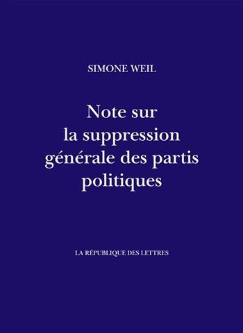 Écrite en 1940, publiée à titre posthume en 1950, cette brève "Note sur la suppression générale des partis politiques" offre une analyse politique pénétrante de Simone Weil sur les partis politiques. Pour l’auteure de "La Condition ouvrière", les partis politiques sont d’abord des machines à fabriquer des passions collectives, ce qui ne répond pas au besoin de démocratie qui doit dépendre avant tout de la volonté humaine. Leur véritable objectif, mortifère pour le bien commun sous couvert d’une illusion démocratique, est de générer sans limite leur propre croissance en aliénant la raison de leurs membres. «La tendance des partis est totalitaire, non seulement relativement à une nation, mais relativement au globe terrestre», affirme-t-elle. Elle suggère la mise en place d’un autre système d’organisation, fondé sur des revues et des groupes d’écriture, sans candidats à présenter aux élections. Les mérites de ce point de vue radical ont été défendus entre autres par André Breton pour qui ce pamphlet relève d’une nécessaire «entreprise de désabusement collectif». Le texte est suivi d’une biographie de Simone Weil.