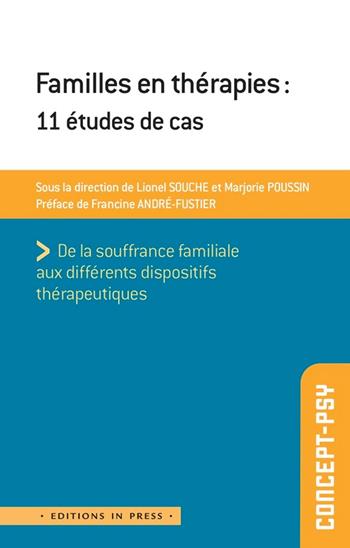 Souffrances dans la famille : quelles réponses les thérapies familiales peuvent apporter ? 11 études de cas concrets pour mieux comprendre les différents dispositifs. Au sein de la famille s’articulent quatre axes distincts et interdépendants : liens conjugaux, liens de filiations, liens de fratrie puis liens de parenté. Toute famille réalise un travail conséquent pour préserver une forme d’équilibre à partir d’une myriade d’interactions. Elle doit s’adapter au changement et, parallèlement, témoigne de vulnérabilités. Aux classiques cycles de vie, peuvent s’ajouter l’annonce du diagnostic d’un des membres de la famille, un traumatisme... La famille entre en crise lorsqu’il y a inadaptation majeure entre ses réactions et l’exigence d’une réorganisation. Les familles présentées dans ce livre ont fait le choix courageux de s’inscrire en thérapie. Comment répondre aux souffrances spécifiques d’un groupe familial ? De la demande à l’évaluation, aux processus thérapeutiques, les auteurs formés aux approches systémique, psychanalytique, ou intégrative définissent des cadres originaux. Véritable guide clinique des différents dispositifs de soins à l’intention d’une famille souffrante, ce livre s’adresse aux psychologues, médecins, psychothérapeutes, psychopraticiens, étudiants et à toute personne en quête de décodage de ce qui assure une thérapie de famille.