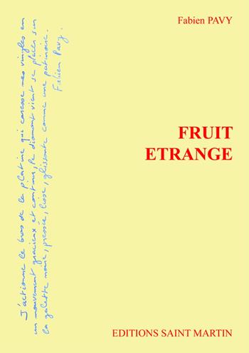 Que faire de sa vie quand on a vingt ans et que l’on est pris au piège entre les murs d’une cité sans avenir ? Que l’on est tiraillé entre deux cultures... Subir son sort en fumant ? Se révolter contre ceux qui ont tout ? Walid cherche ses marques dans la musique d’Ella Fitzgerald et de Billie Holiday. Il ne veut pas se résigner, malgré les moments de doute et d’abattement. Jusqu’à cet appel, un samedi matin ! La possibilité de se prendre vraiment en main. Parce que la réponse est au bout de ce voyage vers le Sud. Peut-être ! Il y avait Sur la route, de Jack Kerouac. Il y a Fruit étrange, de Fabien Pavy.