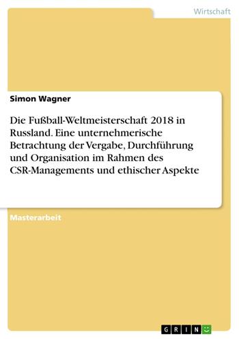 Masterarbeit aus dem Jahr 2022 im Fachbereich BWL - Unternehmensethik, Wirtschaftsethik, Note: 2,0, Bayerische Julius-Maximilians-Universität Würzburg, Sprache: Deutsch, Abstract: Über die Jahre fiel Kritik auf den Weltfußballverband, der Fédération Internationale de Football Association (FIFA). Einzelne Korruptions- und Geldwäscheskandale waren zum Beispiel das Vergabeverfahren 2006 um die Weltmeisterschaft (WM) in Deutschland mit Franz Beckenbauer, die Veruntreuung von Geldern der WM 2010 in Südafrika oder die Sponsoring- und Vermarktungsrechte im Zuge der WM 2014 in Brasilien. Weitere Kritik entstand über die Vergabe der WM nach Katar dieses Jahr oder der WM nach Russland 2018. Letztere ist der Schwerpunkt dieser Arbeit. Bei sportlichen Großereignissen wie die Olympischen Spiele oder eine Fußball-Weltmeisterschaft sind eine transparente Vergabe, Organisation und Durchführung von immenser Bedeutung. Ethische und moralische Werte sollten hier unter allen Umständen gewahrt werden, da eine Vielzahl von verschiedenen Kulturen, Bevölkerungsschichten, Fans und Mitarbeiter aufeinandertreffen und beteiligt sind. Vor allem die Arbeitsbedingungen und Ausbeutung im Zuge der Vorbereitungen auf die WM in Katar erzeugten hohe mediale Aufmerksamkeit, sodass sogar der ehemalige Präsident des Deutschen Fußball-Bundes Herr Theo Zwanziger die Vergabe nach Katar als einen der größten Fehler, den es jemals im Sport gab, kritisierte. Herr Zwanziger hat hier verstanden, dass die gesellschaftliche Unternehmensverantwortung auch im Bereich des Sports angewendet werden muss, da die Verbände Teil des gesellschaftlichen und wirtschaftlichen Organismus sind. Das Gastgeberland steht bei einer solchen Großveranstaltung immer im Rampenlicht. Aktuell wird Russland aufgrund des Krieges in der Ukraine hart von Sanktionen anderer Länder und Unternehmen getroffen. Die UEFA reagiert ebenfalls und entzieht Russland das für 2022 geplante Champions League Finale in St. Petersburg. Darüber hinaus sagt der Ski-Verband die Weltcups in Russland ab, die Formel 1 streicht das Rennen in Sotschi und russische Fußballmannschaften werden aus dem aktuellen Europa-Pokal Turnier sowie der anstehenden Weltmeisterschaft gestrichen, um nur eine kleine Anzahl an Auswirkungen auf den Sport zu nennen. Zum jetzigen Zeitpunkt ist es nicht denkbar, eine der genannten Veranstaltungen umzusetzen. Vor gerade einmal vier Jahren präsentierte sich Russland als Gastgeber der WM. Gab es damals schon abseits der aktuellen Lage Bedenken zum CSR-Management und ethischer Aspekte?