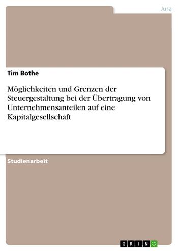 Studienarbeit aus dem Jahr 2022 im Fachbereich Jura - Steuerrecht, Note: 1,0, FOM Hochschule für Oekonomie und Management gemeinnützige GmbH, Hochschulstudienzentrum Hamburg, Veranstaltung: Besteuerung von Übertragungsvorgängen, Sprache: Deutsch, Abstract: Die vorliegende Arbeit befasst sich mit den Möglichkeiten und Grenzen der Steuergestaltung bei der Übertragung von Unternehmensanteilen, die von einer natürlichen Person im Privatvermögen gehalten und auf eine inländische Kapitalgesellschaft (KapG) übertragen werden. Ziel dieser Arbeit ist es, steuerliche Gestaltungsmöglichkeiten für private Investoren darzulegen und aufzuzeigen, wie Unternehmensanteile – unter der vorgenannten Motivation – in eine KapG eingebracht werden können und wo die Grenzen bzw. die steuerlichen Fallstricke dieser Verfahren liegen. In den vergangenen Jahrzehnten war die weltweite Marktwirtschaft von Wachstum geprägt. Seit der Finanzkrise im Jahre 2008 ist das weltweite Bruttoinlandsprodukt bis 2020 von 64,04 Billionen auf 102,4 Billionen US-Dollar angestiegen. Der weltweite Aktienindex ‚MSCI World‘ nahm in der gleichen Zeit um 1.769 Punkte zu. Viele Unternehmen profitierten vom Bullenmarkt und ihre Anteilseigner konnten mitunter eine rasante Wertentwicklung ihrer Beteiligungen verzeichnen, die nun (je nach Einstiegskurs) erhebliche stille Reserven enthalten. Auch heute noch, in den durch Krieg und Pandemie geprägten volatilen Marktphasen, stehen die weltweiten Aktienmärkte um rund 20 % höher als vor zwei Jahren. Je nach Rechtsform der Beteiligung sowie des beteiligten Rechtssubjektes ist die Besteuerung der Unternehmensanteile unterschiedlich ausgestaltet. Zur erfolgreichen Vermögensoptimierung eines jeden Investors gehört daher eine gut durchdachte Steuerplanung. Eine Möglichkeit hierfür kann die Verwendung einer Holdinggesellschaft (kurz: ‚Holding‘) darstellen. Hierbei handelt es sich i. d. R. um eine Kapitalgesellschaft, deren Zweck darin besteht, eigenes Vermögen zu halten und zu verwalten. Sollen bereits bestehende Unternehmensbeteiligungen aus dem Privatvermögen (PV) auf eine Holding übertragen werden, kann dies unter Umständen eine unerwünschte Besteuerung der Anteile auslösen, die es zu reduzieren oder im besten Fall ganz zu vermeiden gilt.
