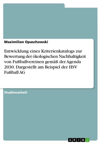 Entwicklung eines Kriterienkatalogs zur Bewertung der ökologischen Nachhaltigkeit von Fußballvereinen gemäß der Agenda 2030. Dargestellt am Beispiel der HSV Fußball AG (eBook)