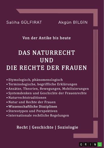 Fachbuch aus dem Jahr 2025 im Fachbereich Jura - Rechtsphilosophie, Rechtssoziologie, Rechtsgeschichte, Note: 5 (=A), Istanbul Üniversitesi, Sprache: Deutsch, Abstract: Das "Naturrecht", das von Natur aus existiert und über allem anderen steht, ist die ungeschriebene Regel des Rechts, die der menschlichen Vernunft zugänglich ist. Das Buch "Das Naturrecht und die Rechte der Frauen" untersucht in erster Linie die problematische Stellung der Frau vor dem Gesetz im "positiven Recht" und im "realistischen Recht". Die Frage der "Frauenrechte" geht auf die historischen Konzepte des "Naturrechts" zurück, von seinen Ursprüngen im antiken griechischen Denken über die mittelalterliche scholastische Tradition bis hin zu den Theorien der Naturrechte und der modernen Menschenrechte nach der Aufklärung. Die heutige moderne Gesellschaft kann von einer kritischen Rückbesinnung auf das "Naturrecht" und seine Fähigkeit, Vorstellungen vom guten Leben zu vermitteln, viel profitieren. Wenn sie jedoch die Probleme der Frauen, der Umwelt und der sozialen Gerechtigkeit ernst nehmen will, muss sie über ihre klassischen Argumente hinausgehen und eine radikalere und umfassendere Neubewertung der Beziehung zwischen Gesellschaft und sozialer Gerechtigkeit anbieten. Wir brauchen ein Recht, das auf einer neu belebten Schöpfungslehre beruht, die die Bedeutung der materiellen Welt, einschließlich des geschlechtlichen menschlichen Körpers, als eine gute Schöpfung bekräftigt, die so geordnet werden kann, dass das gegenseitige und voneinander abhängige Gedeihen der menschlichen Gesellschaft und des natürlichen Lebens ermöglicht wird. Dieses Buch zielt darauf ab, einen Dialog zwischen den Traditionen des "Naturrechts" und den Rechtsformen zu entwickeln, die die Traditionen und Argumente des "Naturrechts" als Quellen für die Entwicklung einer neuen Theorie der Frauenrechte nutzen, die auf die Herausforderungen an die Konzepte der Geschlechter und der Gleichheit vor dem Gesetz, der säkularen und religiösen Gerechtigkeit sowie des "positiven Rechts" und des "realistischen Rechts" reagieren kann.