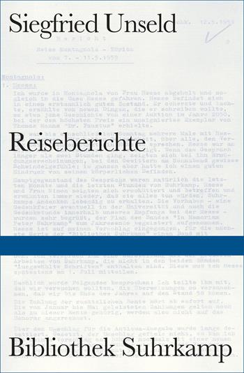 Zehn Tage nachdem Siegfried Unseld am 1. April 1959 die Leitung des Suhrkamp Verlags übernommen hat, reist er nach Ost-Berlin, um Brechts Witwe Helene Weigel zu besuchen. Zurückgekehrt, diktiert er den ersten der von ihm selbst so genannten Reiseberichte. In über 1500 Berichten hat er bis zu seinem Tod 2002 die für ihn und seine Mitarbeiter wesentlichen Resultate seiner Gespräche festgehalten. Die Weitergabe an Personen außer Haus war streng verpönt. Zum 70-jährigen Verlagsjubiläum wird das Betriebsgeheimnis nun gelüftet. Die spannenden Reportagen, darunter eindrucksvolle Schilderungen seiner Reisen nach Japan und Israel in den 1980er und 1990er Jahren, offenbaren einen Blick hinter die Kulissen des literarischen Lebens und bieten die einmalige Gelegenheit, den Aufbau des Suhrkamp Verlags aus der Sicht des Verlegers zu verfolgen. Sie dokumentieren die wichtigsten kulturellen Ereignisse innerhalb der letzten vier Jahrzehnte des 20. Jahrhunderts in Begegnungen zwischen Verleger und den für diese Zeit bedeutsamsten deutschen und internationalen Autoren – mal dramatisch, mal entspannt urlaubend, mal kämpferisch. Die hier in Auswahl zum ersten Mal publizierten Reiseberichte Siegfried Unselds führen in die Welt des Verlegers und Verlegens mit all ihren Höhe- und Tiefpunkten, ihrem Glanz und Elend – ob beim Geburtstag von Max Frisch in New York, mit Samuel Beckett in Paris, mit Peter Weiss in Kopenhagen, mit Jurek Becker in Leipzig, bei Ingeborg Bachmann in Rom, mit Amos Oz in Israel, mit Thomas Bernhard in Wien oder mit Peter Handke auf der ganzen Welt – und zeichnen das Porträt der kulturellen Nachkriegsgesellschaft aus der Sicht eines ihrer wirkungsmächtigsten Akteure.