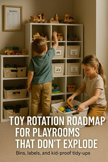 Turn chaotic playrooms into calm, creative spaces with Toy Rotation Roadmap for Playrooms That Don't Explode. This smart, parent-friendly guide shows you how to use bins, labels, and simple routines to keep toys organized—and kids happily engaged. Learn how to set up an easy toy rotation system that sparks excitement without overwhelming your children or your space. Discover labeling tricks that even toddlers can understand, kid-proof tidy-up methods that actually stick, and minimalist-inspired strategies for managing toy clutter in real family homes. Designed for busy parents, this roadmap helps you create order that lasts while teaching your kids independence, focus, and appreciation for what they have. With clear steps, before-and-after examples, and realistic maintenance routines, this book makes playroom calm possible—no fancy systems, no frustration, no explosions.
