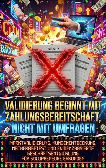 Die meisten Gründer verlassen sich auf Umfragen, Fokusgruppen und theoretische Marktanalysen, um ihre Geschäftsideen zu validieren. Diese Methoden liefern jedoch häufig irreführende Signale, denn Meinungen über ein Produkt unterscheiden sich fundamental von tatsächlicher Kaufbereitschaft. Dieses Buch untersucht, wie aussagekräftige Marktvalidierung funktioniert und welche Fehler Solopreneure typischerweise machen. Es analysiert die Differenz zwischen deklariertem Interesse und realem Kaufverhalten und zeigt, wie Gründer echte Marktsignale von Höflichkeitsäußerungen unterscheiden können. Von der Kundenentdeckung über Demand Testing bis zur iterativen Produktentwicklung – das Buch beleuchtet, welche Validierungsmethoden tatsächlich Risiken reduzieren und welche nur Bestätigung vortäuschen. Besonders relevant für Solopreneure und Gründer, die ihre Geschäftsideen mit minimalem Kapitaleinsatz testen möchten. Es untersucht, wie präzise Kundensegmente identifiziert, Hypothesen formuliert und systematisch überprüft werden. Ein strategischer Leitfaden für evidenzbasierte Geschäftsentwicklung, der auf realen Marktsignalen statt auf Annahmen basiert.