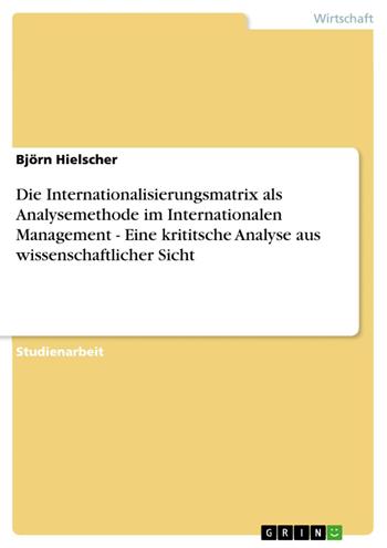 Die Internationalisierungsmatrix als Analysemethode im Internationalen Management - Eine krititsche Analyse aus wissenschaftlicher Sicht (eBook)