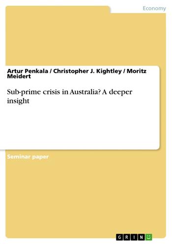 Seminar paper from the year 2007 in the subject Business economics - Banking, Stock Exchanges, Insurance, Accounting, grade: 1,3, Macquarie University (GRADUATE ACCOUNTING AND COMMERCE CENTRE), course: Capital Markets, language: English, abstract: This essay discusses the effects of the US subprime meldown on the Australian economy. Why do we have any transnational effects? To which extand exted to we have them in Australia? Can Australia counteract the subprime wave? These and more topics have been discussed in the following paper from an Australian point of view. I. Table of contents II. Relevance of sub-prime mortgage market a. Recent problems in the US-market b. Reaction of the stock markets in Australia III. Structure of the mortgage markets a. Loan policy of Australian banks and real estate financial institutions in the last few years b. Risks and effects of this policy c. The way to minimize this risks d. Problems of investment funds IV. Market reaction of the risky practice of loans granting V. Actual problems VI. Conclusion VII. References