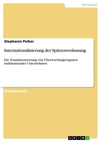 Studienarbeit aus dem Jahr 2006 im Fachbereich BWL - Unternehmensführung, Management, Organisation, Note: 1,3, Universität Mannheim, Sprache: Deutsch, Abstract: Im Zeitalter der Globalisierung ist die multinationale Präsenz von Unternehmen ein essenzieller Erfolgsfaktor. Mit einer Ausweitung der Geschäftstätigkeit auf internationaler Ebene gestalten sich Möglichkeiten vielfältiger, doch es gilt komplexe und neue Zu-sammenhänge in einer fremden Unternehmensumwelt erfolgreich zu bewältigen. Dies führt zu einer Erweiterung des Aufgabenfeldes der Spitzenverfassung von multinationalen Unternehmungen (MNU) und impliziert, dass Kompetenz und Zusammensetzung der Unternehmensspitze für das globale Umfeld geeignet sind. Dem Überwachungsgremium kommt dabei neben der Führungsspitze eine besondere Bedeutung zu. Gesetzliche Hintergründe und Corporate Governance (CG) allgemein spielen bei der Zusammensetzung des Aufsichtsgremiums ebenso eine Rolle, wie die Erweiterung seines eigentlichen Aufgabenbereichs und damit verbundene Fähigkeiten und interkulturelles Bewusstsein, welches die Gremienmitglieder mitbringen müssen. Vor diesem Hintergrund werden in dieser Arbeit Funktion und internationale Zusammensetzung des Überwachungsgremiums einer MNU betrachtet. Hierbei wird anhand von Kanada und Österreich beispielhaft auf zwei in ihrer CG-Struktur unterschiedliche Länder eingegangen.