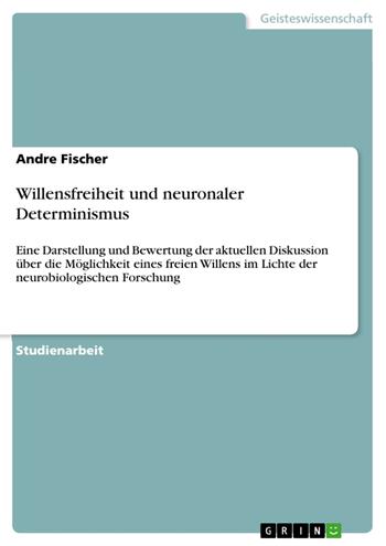Studienarbeit aus dem Jahr 2007 im Fachbereich Philosophie - Theoretische (Erkenntnis, Wissenschaft, Logik, Sprache), Note: 1,0, Humboldt-Universität zu Berlin (Institut für Philosophie), Veranstaltung: Freiheit und Neurobiologie, Sprache: Deutsch, Abstract: Die Frage, ob und in welcher Form der Mensch über einen freien Willen verfügt, reicht bis in die Anfänge des philosophischen Denkens zurück. Nahezu jeder große Denker nahm sich in der zweieinhalbtausendjährigen Geschichte der Philosophie diesem Problem an. Spätestens seit dem Aufstieg der Naturwissenschaften steht die Frage im Mittelpunkt, wie sich unsere Intuition von einem freien Willen mit einem Weltbild in Einklang bringen lässt, das in sich kausal geschlossen ist, d.h. in dem alle Ereignisse durch ihre physischen Zustände und das Wirken von Naturgesetzen determiniert sind. Es wurde danach gefragt, wie unser immaterieller Geist in der Lage ist, auf die materielle und kausal geschlossene Welt einzuwirken, und ob wir durch unseren Willen tatsächlich befähigt sind, neue Kausalketten im Sinne eines unbewegten Bewegers anzustoßen. Man könnte geneigt sein, zu glauben, dass alle möglichen Lösungsansätze und Konzepte zur Beantwortung dieser Fragen gründlich durchdacht und erschöpft worden sind. Dennoch hat die Frage nach dem freien oder unfreien Willen in jüngster Zeit eine außergewöhnliche Renaissance erfahren. Ausgelöst wurde die aktuelle Debatte durch zahlreiche Neurowissenschaftler, die mit Hilfe neuer technischer Apparaturen und innovativer Methoden dem Gehirn des Menschen in bisher ungekannter Weise bei der Arbeit zuschauen konnten. Aus ihren Beobachtungen folgerten sie, dass der freie Wille eine von unserem kognitiven System erzeugte Illusion ist und dass einzig das neuronale Geschehen innerhalb des Gehirns unsere Entscheidungen und Handlungen bestimmt. Zugespitzt bedeutet das: „Wir tun nicht, was wir wollen, sondern wir wollen, was wir tun. “ Nun sind deterministische Theorien, die den Menschen und sein Verhalten in die kausale Geschlossenheit der Welt einbeziehen, nicht unbedingt neu. Die Frage ist also, warum sich dennoch so viele Philosophen, Juristen und Theologen von den Neurowissenschaftlern dermaßen herausgefordert fühlen, dass sie durch scharfe Repliken eine hitzige Debatte entfachten. Die Antwort besteht darin, dass die Thesen der Neurowissenschaftler an unserem Selbstbild zu rütteln scheinen. Und sie tun dies nicht – wie in den Jahrhunderten davor – durch philosophische Spekulation oder gedankliche Akrobatik, sondern mit der Autorität der Wissenschaft. Christian Geyer formuliert die von den Neurowissenschaften erzeugte Bedrohung unseres Menschenbildes so: