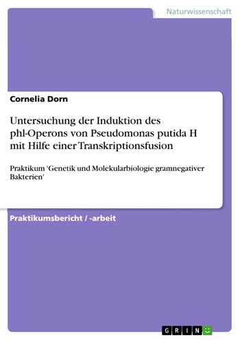 Praktikumsbericht / -arbeit aus dem Jahr 2006 im Fachbereich Biologie - Mikrobiologie, Molekularbiologie, Note: keine, Humboldt-Universität zu Berlin, Sprache: Deutsch, Abstract: Eine wichtige Technik für die Untersuchung von Genexpression ist die Verwendung von sogenannten Reportergenen. Dabei handelt es sich um Gene, deren Produkte leicht nachweisbar sind (Farbe, Fluoreszenz etc) und die unter die Kontrolle eines zu untersuchenden Promotors gestellt werden. In unserem Versuch wurde das Gen für die ß-Galaktosidase verwendet um die Funktion des phl-Operons von Pseudomonas putida zu untersuchen. In diesem Operon sind die Gene für den Phenol-Abbau (der über den Meta-Abbauweg erfolgt) kodiert, es wird durch die Anwesenheit von Phenol induziert. Im verwendeten Mutantenstamm befindet sich nun das lacZ-Gen anstelle des zweiten Gens im phl-Operon, es handelt sich um eine Transkriptionsfusion. Durch Phenol sollte hier also die ß-Galaktosidase-Produktion induziert werden, was sich farblich nachweisen lässt. Neben dem Mutanten-Stamm wurde auch der zum Phenol-Abbau fähige Wildtyp-Stamm verwendet, beide wurden in je 2 Ansätz geteilt von denen immer einer mit Phenol versetzt wurde. Die Stämme wurden für 5 Stunden inkubiert, wobei einmal in der Stunde eine Probe entnommen wurde, welche zum Messen der optischen Dichte und der ß-Galaktosidase-Aktivität dienten.