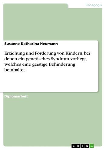 Diplomarbeit aus dem Jahr 2004 im Fachbereich Pädagogik - Heilpädagogik, Sonderpädagogik, Note: 2,00, Johann Wolfgang Goethe-Universität Frankfurt am Main, Sprache: Deutsch, Abstract: Wie soll man Kinder, bei denen ein genetisches Syndrom (Down-Syndrom oder Trisomie 21, Fragiles X-Syndrom, Angelmann-Syndrom, Katzenschrei-Syndrom) vorliegt, welches eine geistige Behinderung beinhaltet, erziehen und fördern? Soll sich die Erziehung eher am Syndrom oder eher am Individuum orientieren? Die Arbeit gliedert sich in einen theoretischen und einen empirischen Teil. Zunächst wird der Begriff des Syndroms erläutert. Es wird auf Aspekte genetisch verursachter Syndrome eingegangen und die entsprechenden humangenetischen Grundlagen werden erläutert. Desweiteren wird die ambivalente Funktion von Diagnosen diskutiert, indem der Nutzen fachlich gesicherten Wissens gegen den Schaden von Etikettierungsprozessen abgewägt wird. In diesen Zusammenhang wird die Anlage- Umwelt- Kontroverse eingebettet und die Position verschiedener entwicklungspsychologischer Schulen dargestellt. Für den empirischen Teil der Arbeit wurden mit 25 Sonderpädagogen an Schulen für Praktisch Bildbare im Rhein-Main-Gebiet Interviews durchgeführt. Die Lehrer erzählten wie sie solche Schüler im Unterricht fördern, ob sie sich am Syndrom orientieren oder die Schüler eher als Individuum betrachten. Am Ende der Arbeit werden die Ergebnisse der Befragung mit den Befunden aus der Literatur kurz abgeglichen und ein Fazit aus der Untersuchung gezogen.